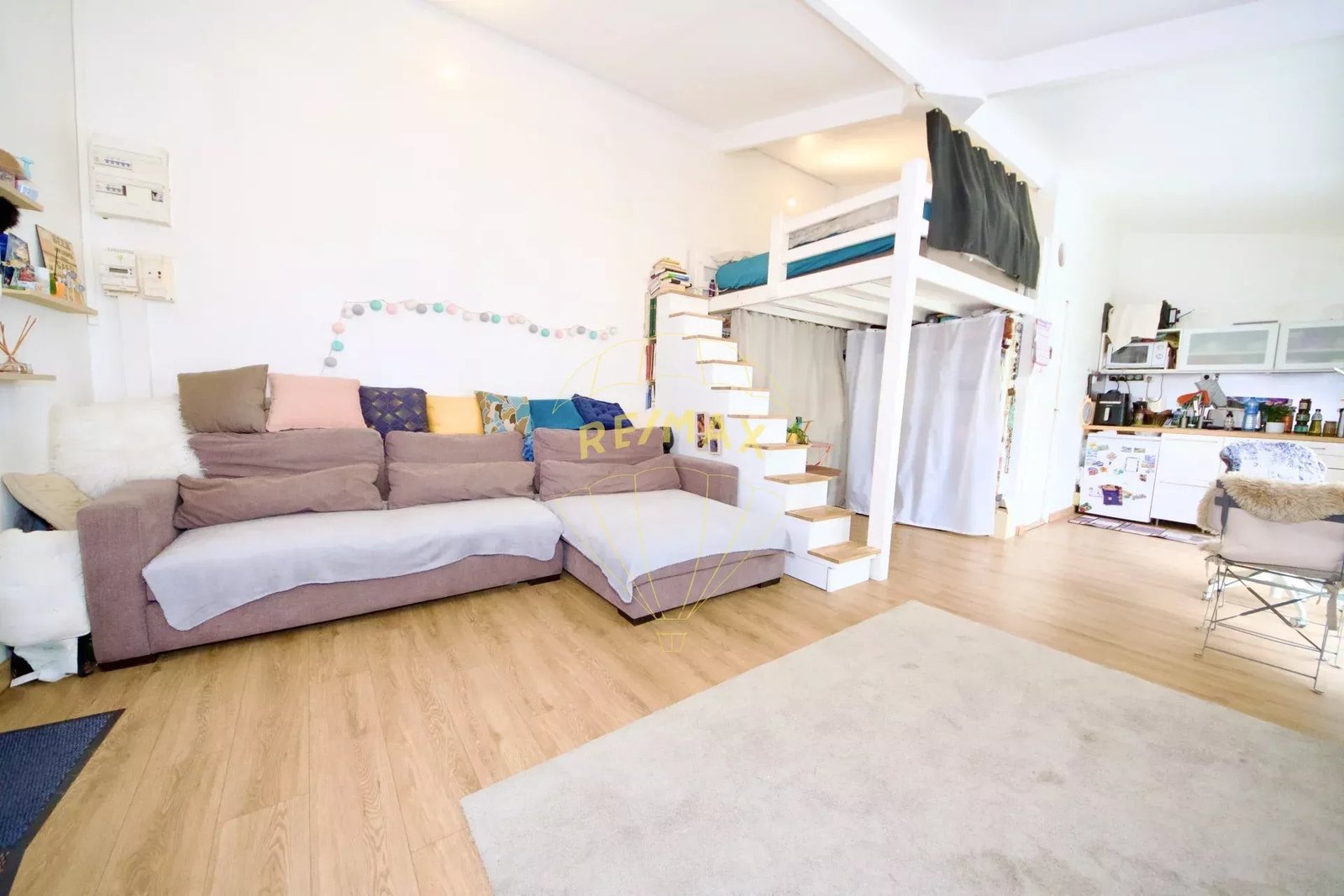 – Aménagement: Mezzanine aménagée grâce à une belle hauteur sous plafond