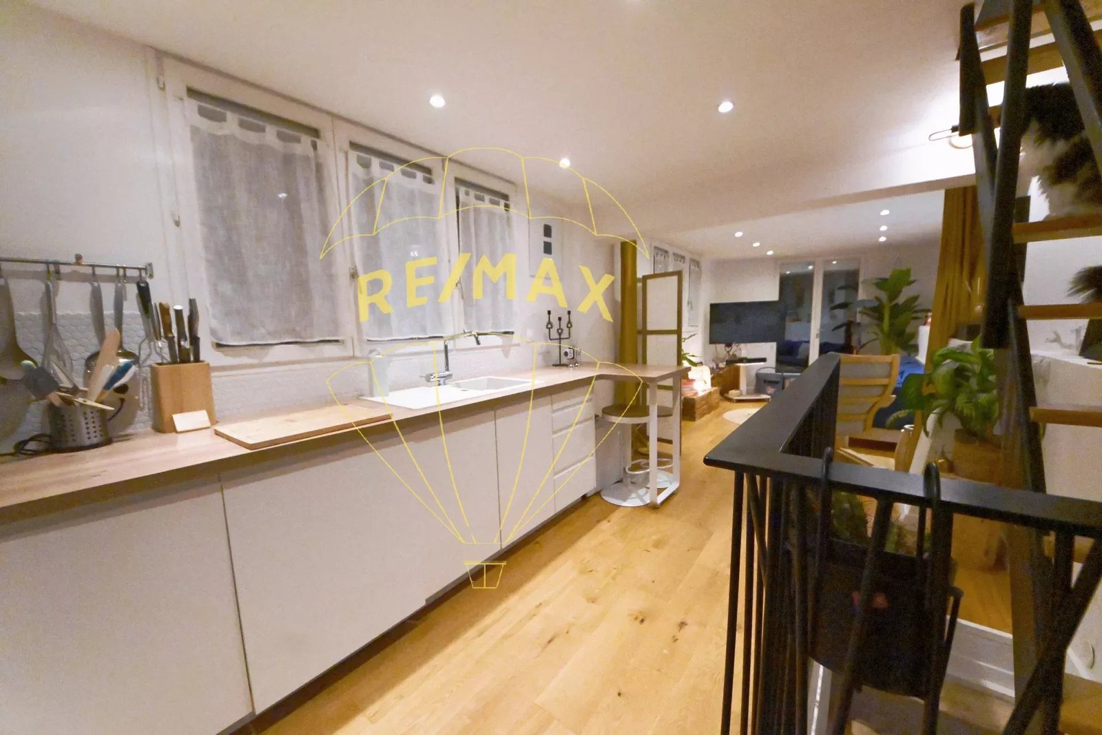 Vous découvrez la pièce de vie, composée d’une cuisine aménagée et équipée, et d’un séjour chaleureux, au sol parqueté. Une jolie surprise vous y attend…